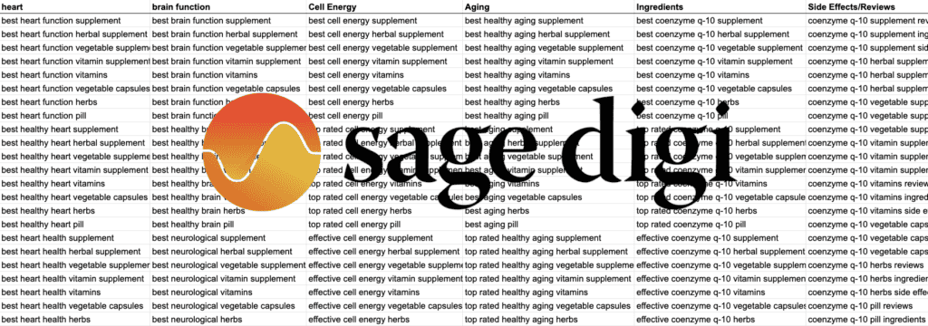 The keyword spreadsheet should somewhat resemble the above. You want to see column after column of tightly-themed keywords. Each theme should represent a single product feature. The list of keywords you launch with should be fairly comprehensive. An agency should deliver this at launch and not lean heavily on adding the majority of terms later.